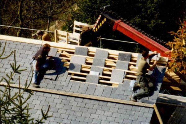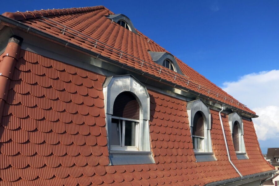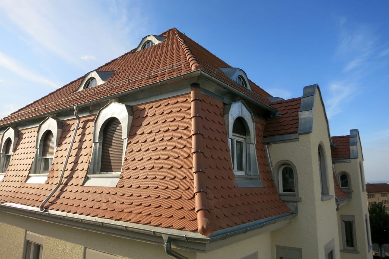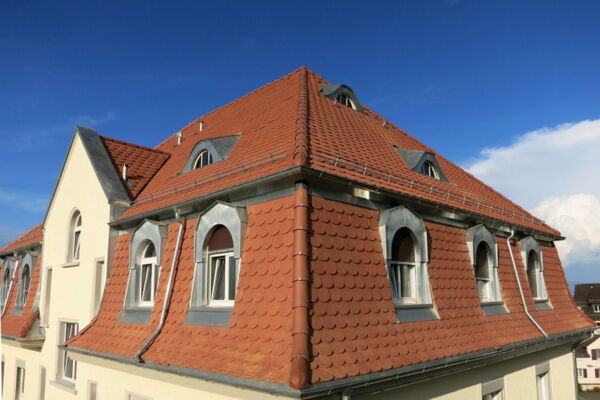 Steildachsanierung mit Grossbiber und Spenglerarbeiten in Zink.